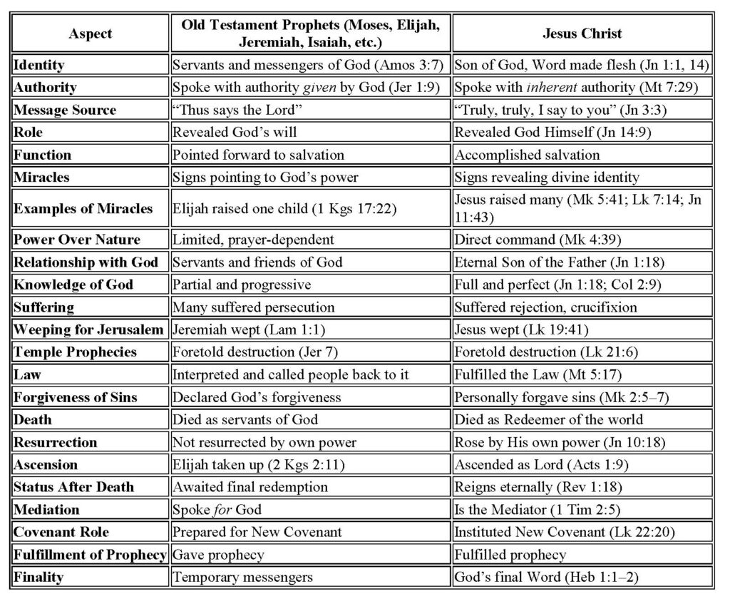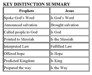 JESUS VS. THE PROPHETS – COMPARATIVE CHART